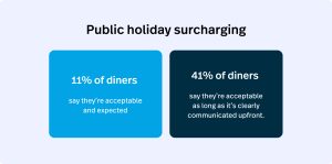 With 52% of diners saying a surcharge on public holidays is acceptable, it’s the one fee that customers not only tolerate, but understand. Rising wages, surging demand and higher operating costs on these days all contribute to that sense of fairness a surcharge fosters.