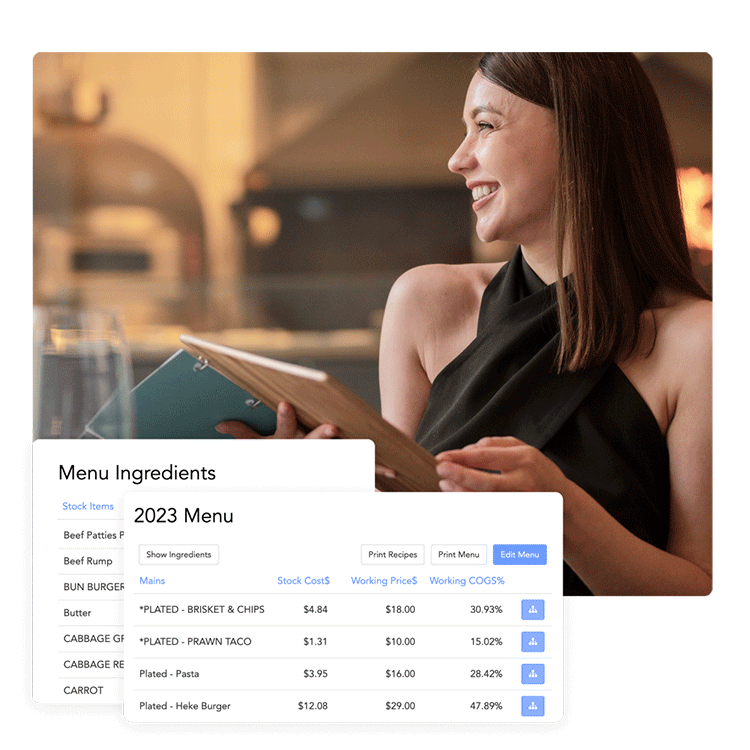 - End-to-end inventory management: Smart inventory management designed and tested to deliver an 8% reduction in cost of goods through live pricing of stock, recipes, menus, and COGS.